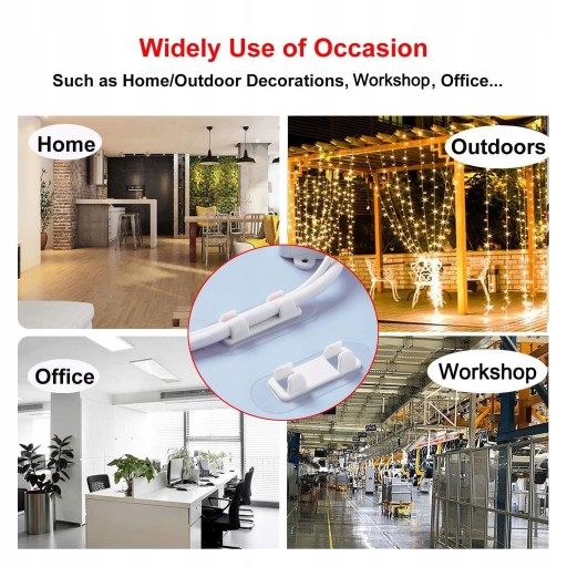 5. ШИРОКЕ ЗАСТОСУВАННЯ: Тримачі кабелів дуже корисні для прокладки мережевих кабелів, домашніх кабелів, комп'ютерних кабелів, USB-кабелів, телевізійних кабелів, ламп тощо. Вони широко використовуються в будинках, офісах та автомобілях.