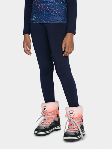 Термоактивні лосини для дівчинки 4F. Легінси утеплені і завдяки використаній у виробництві технології 4FWarm запобігають охолодженню тіла, гарантуючи оптимальний тепловий комфорт. Чудово підійде як другий шар теплого одягу для дівчаток. Смугасті шви зводять до мінімуму ризик можливих потертостей або подразнень. Еластична гумка на талії дозволяє оптимально підлаштуватися під фігуру дитини. Термолегінси можна носити як другий, зігріваючий шар, так і самостійно зі світшотом чи сукнею. Здати іспит як вдома, так і в садку або в школі. Вони ідеально сидять, забезпечуючи дитині максимальний комфорт і повну свободу рухів, що важливо під час щоденних бігу та ігор. Термоактивні легінси 4F стануть практичним елементом гардеробу дівчини в осінньо-зимовий сезон.