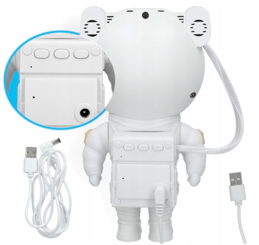 Зоряний проектор Astronauta — чудовий пристрій, який забезпечує надзвичайні візуальні та світлові ефекти. Він ідеально підійде як дитяча тумбочка, гаджет для вечірки або повсякденний світильник у вітальні, який створить романтичну атмосферу під час проведення часу з другою половинкою.