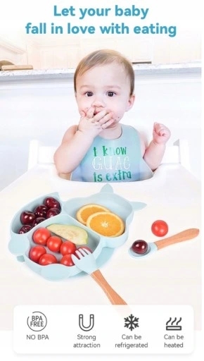 ВИРІШІТЬ УСІ ПРОБЛЕМИ З ГОДОВУВАННЯМ В ОДНОМУ НАБОрі: Не турбуйтеся про те, що ваша дитина постійно розсипає їжу та псує одяг під час їжі, наш набір дитячих мисок із сильним всмоктуванням запобігає ковзанню та обертанню їжі. Більш глибока силіконова лінійка з контейнером для їжі зберігає одяг вашої дитини чистим. Дитині треба їсти, у батьків менше часу на прибирання!