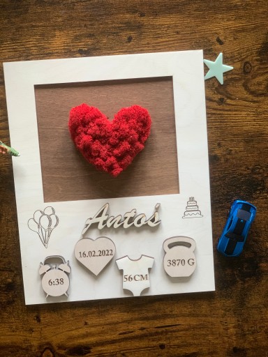 Дитяча платівка 30 х 25 см з серцем з моху