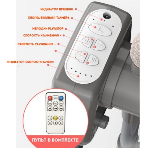 Люлька оснащена електроуправлінням з кількома режимами. Досить зручно розташувати малюка в колисці, вибрати одну з чотирьох швидкостей заколисування і встановити таймер, щоб малюк перестав капризувати, не просився на руки і заснув. Завдяки цій технології у мами буде більше часу для відпочинку, тому що люлька буде колисати і укладати дитину спати в обраному режимі і під обрану мелодію.