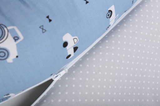 Візерунок: Джинсовий автомобільчик + горошок на сірому