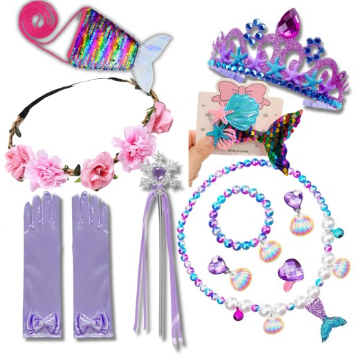 корона + намисто + браслет + каблучка + сережки + сумочка + вінок + шпилька русалка + беро + рукавички