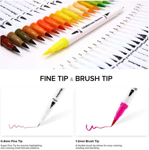 - Малювання, каліграфія та багато іншого: ручки Ohuhu можуть усе. Наші розмальовки ідеально підходять для малювання, ілюстрації, каліграфії, виготовлення листівок, штампування, розфарбовування книжок і всього іншого, що тільки можна придумати. Незалежно від того, що вам потрібно, ці ручки з двома наконечниками допоможуть вам!