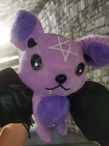 Фіолетового кольору, на голові вишита біла пентаграма.