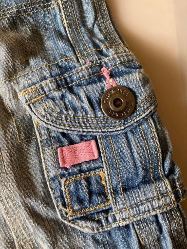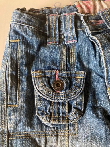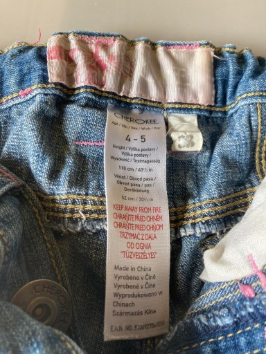 Джинсові штани для дівчинки. Розмір на етикетці: 4-5 років. Регульований еластичний пояс ззаду.