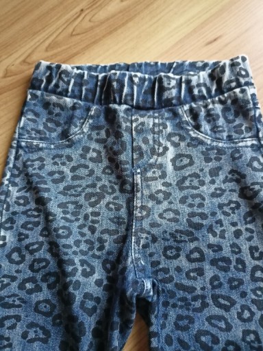 не дівчина 104 розмір. Темно-сині з леопардовим візерунком – джегінси, сірі – в горошок з регульованою талією та утеплені легінси.