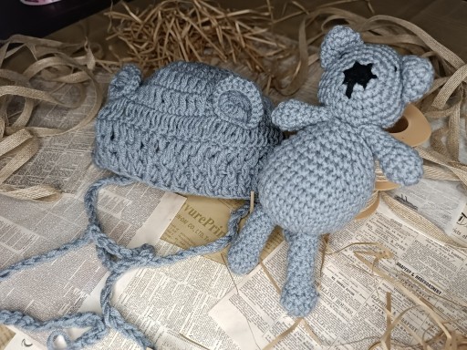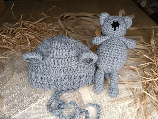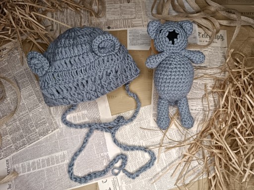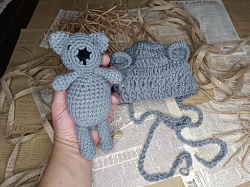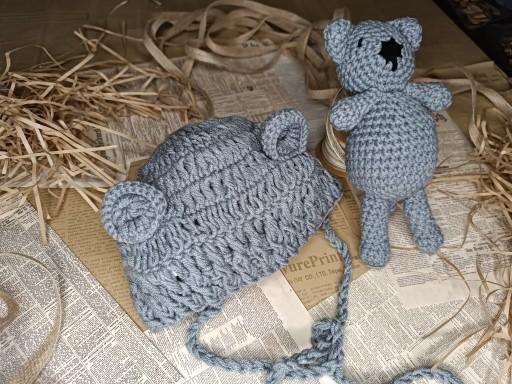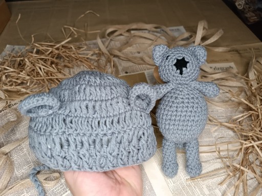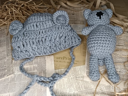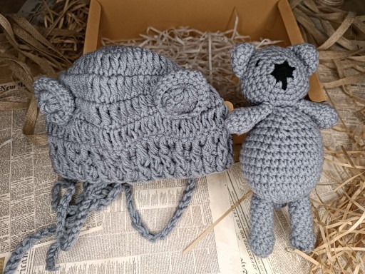 Набір плюшевого ведмедика, шапочка з вушками та м'яка іграшка сірого кольору, ідеальний вибір, ідеальний подарунок.