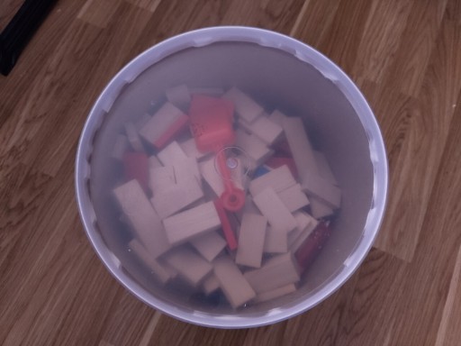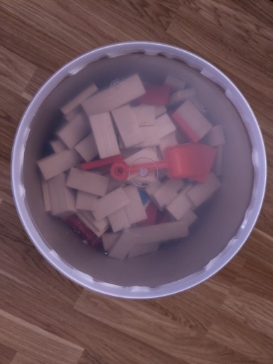 Предмет продажу - новий набір різнокольорових кубиків доміно - 400 штук в оригінальній, не відкриваній коробці. У коробці є безкоштовний пластиковий шпатель, який видно крізь прозору кришку (див. фото), і я не знаю, чи є ще щось, тому що я не відкривав упаковку.