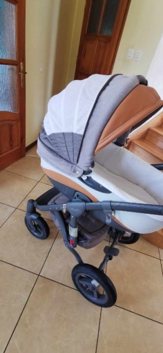 Глибока гондола зручна та вентильована, чиста та доглянута, незважаючи на використання. Стела на заселених колесах з великим кошиком. Сидіння-люлька Turek кріпиться на адаптери, користувалася кілька разів, як нова.
