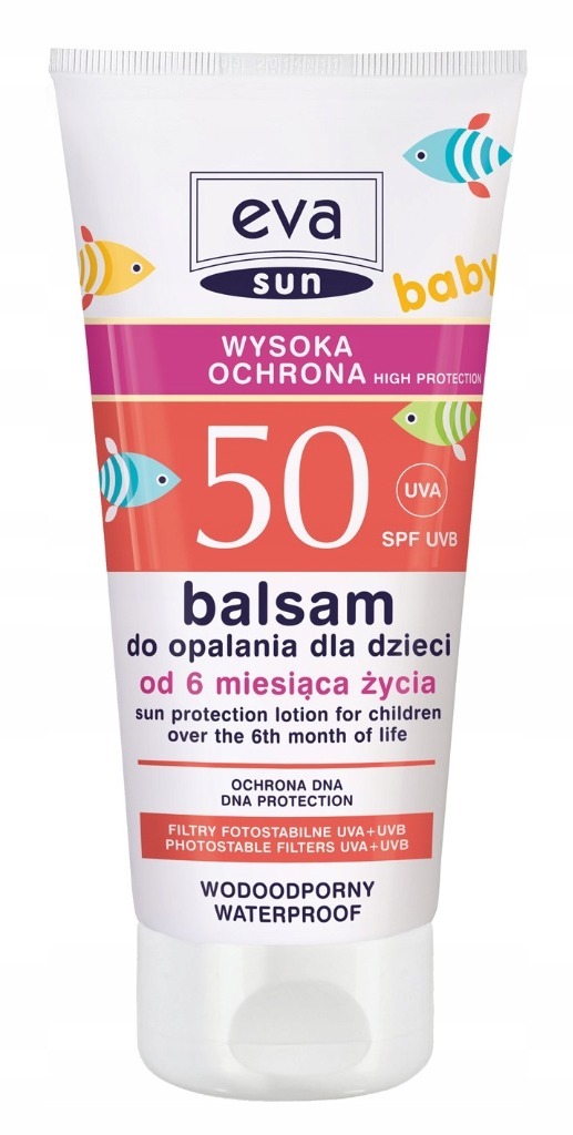 Сонцезахисний лосьйон Eva Sun для дітей ефективно захищає ніжну шкіру вашої дитини від шкідливого впливу UVA та UVB випромінювання. Рекомендовано дітям від 6 місяців. Його також можуть використовувати дорослі з надзвичайно чутливою шкірою.
