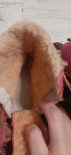 Без потертостей і т.д. Натуральна шкіра, підтверджена штампом на липучці. Утеплене взуття, ідеальне для морозу. М’які та зручні всередині, гарні дівчачі кольори зовні. Пальці ніг захищені від синців.