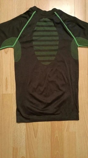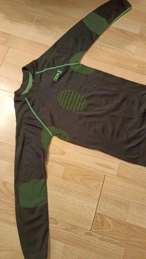 Дитяча спортивна футболка з довгим рукавом Therm X, розмір 158-164 см. Довжина рукава 48см. Дуже хороший стан, чорно-зелений. Прати максимум при 40 градусах, не прасувати. Склад: 60% поліамід, 31% поліестер, 9% еластан.