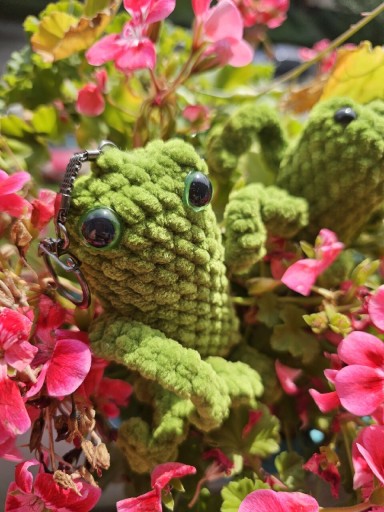 В'язана підвіска амігурумі абка з дитячої плюшевої пряжі Himalaya Doplin Наповнена силіконовою кулькою проти алергії.