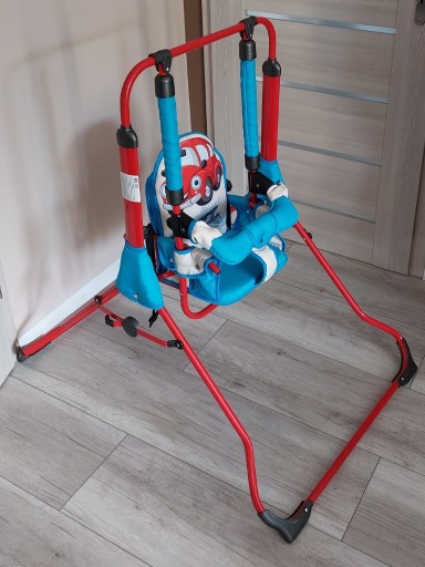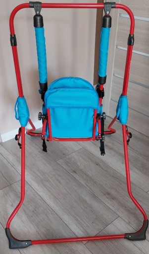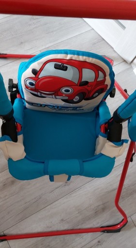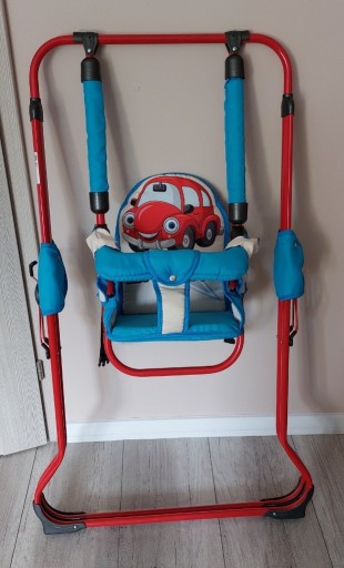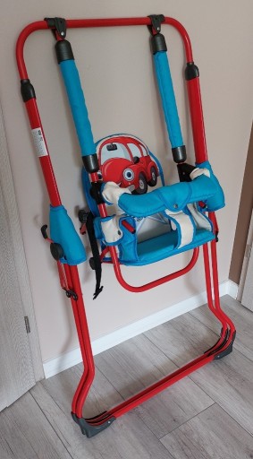 Дитячі гойдалки з перилами і відкидною спинкою. Гойдалки з м'якими поручнями повністю виготовлені на польських фабриках з товстих сталевих труб і високоякісних тканин. На відміну від більш дешевих китайських аналогів, він характеризується набагато кращою міцністю і якістю виготовлення.