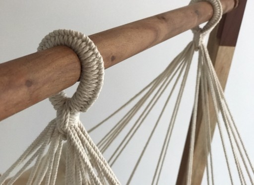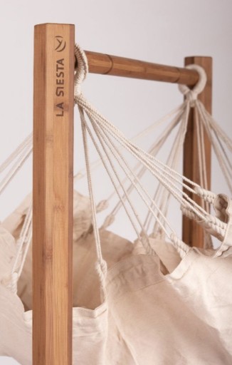 Поєднання дитячого гамака Yaita, який підтримує розвиток дитини, виготовленого з органічної бавовни, сертифікованої GOTS, і підставок із сертифікованого FSC бамбукового дерева забезпечує гнучкість і безпеку.