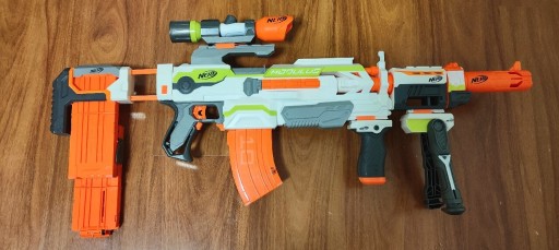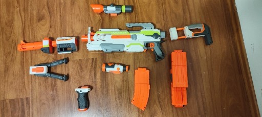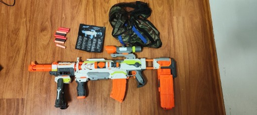 Живиться від батарейок. Як видно на фото, це повна комплектація даної моделі, в комплект також входить жилетка. Гвинтівка має оригінальну коробку та інструкцію.