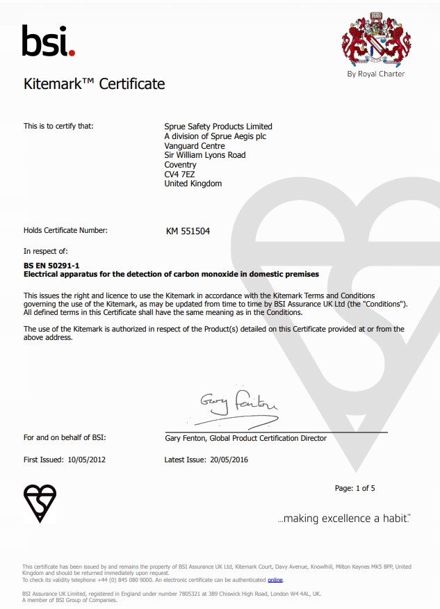 - Certyfikat BSI EN50291-1:2010 oraz EN50291-2:2010,