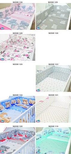 7. Голий протектор 180 х 20 см - ідеальний захист для голови вашої дитини. Ми є ЄДИНОЮ компанією на Allegro, яка пропонує його з жорсткого поролону товщиною 2 см (а не тонкого тканого полотна, як інші). Тільки така товщина і жорсткість забезпечує ідеальний щит від ударів об щаблі. Протектор має вшиті ремені для кріплення до вушка. Зав'язки виконані того ж кольору, що і постільна білизна.