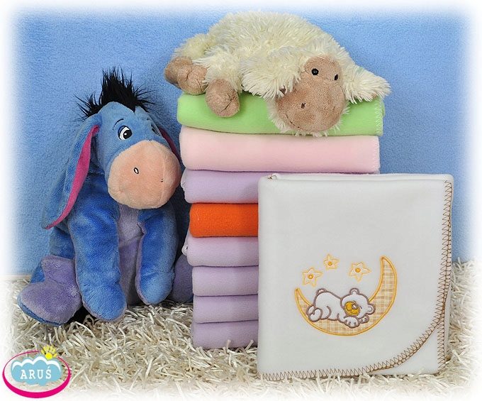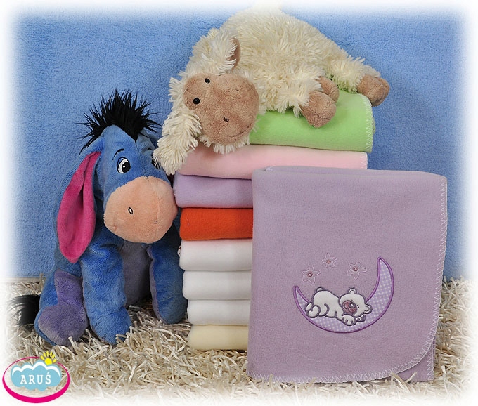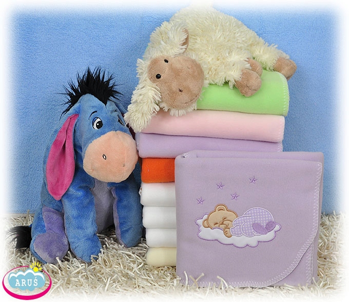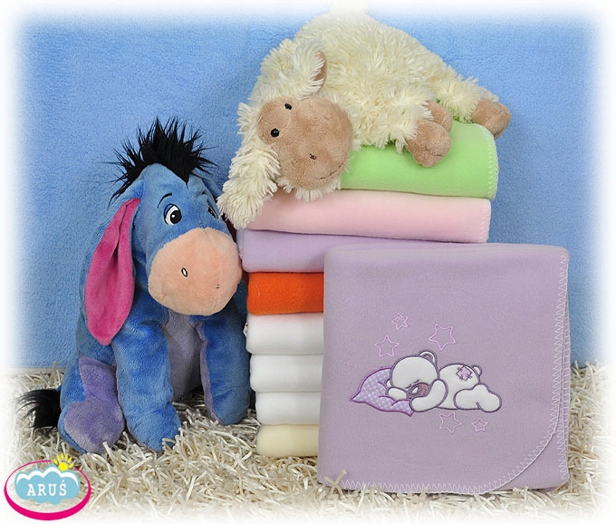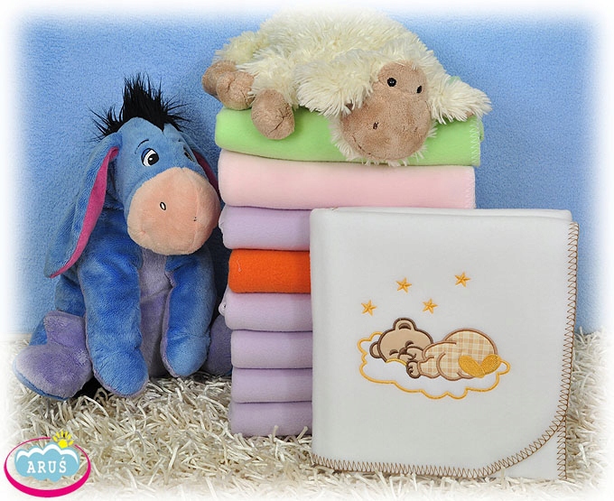 Wykonany jest z miękkiego miłego w dotyku polarku w pastelowych kolorach