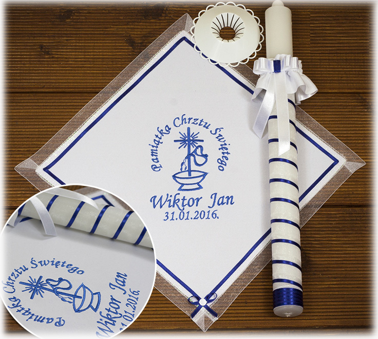 Imiona i data chrztu będą wyhaftowane w takiej formie, jaką Państwo podadzą w opisie.