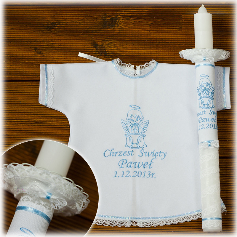 Szatka-koszulka i świeca do Chrztu Świętego, wzór 20KA3