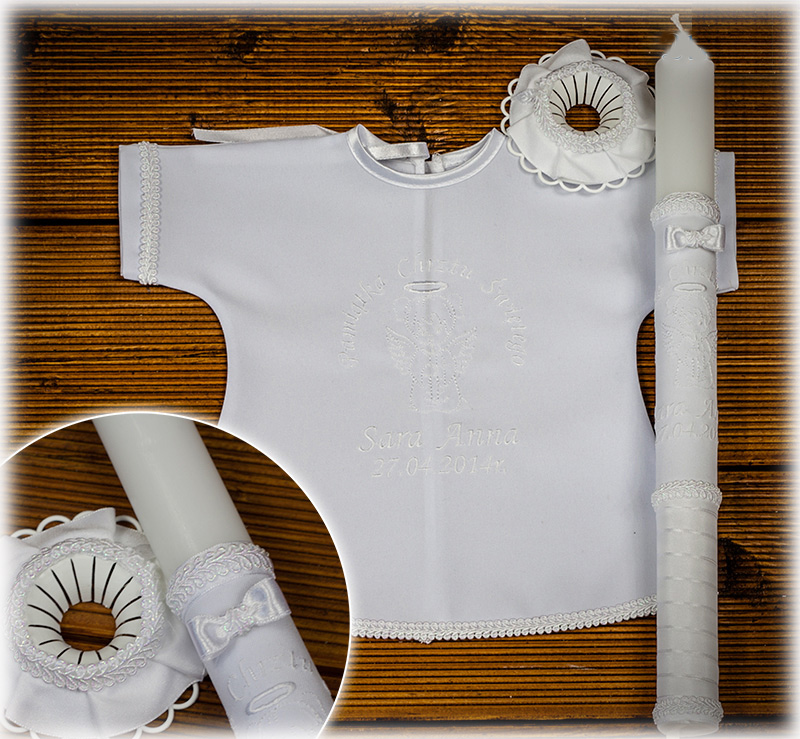 Szatka-koszulka i świeca do Chrztu Świętego, wzór 2KA4