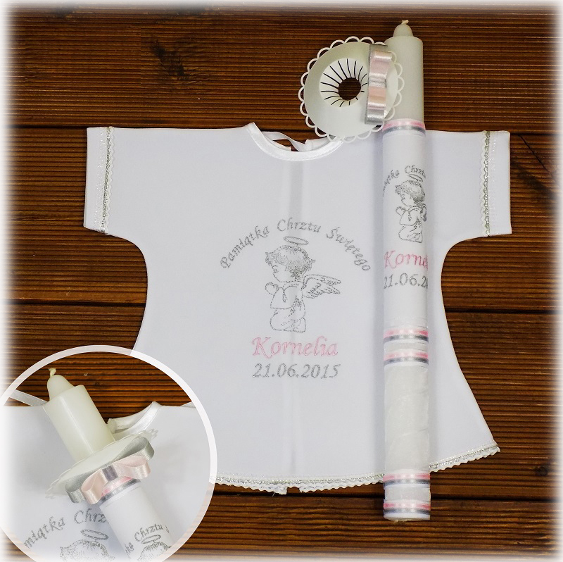 Szatka-koszulka i świeca do Chrztu Świętego, wzór 21KA6