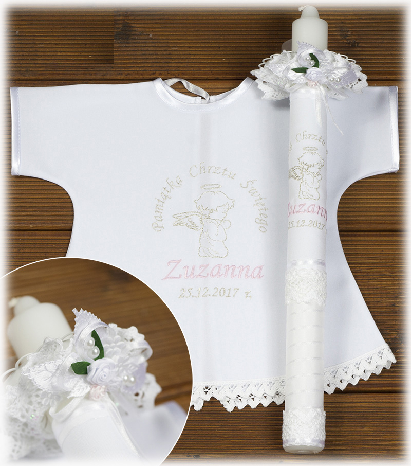 Szatka-koszulka i świeca do Chrztu Świętego, wzór 17KA5