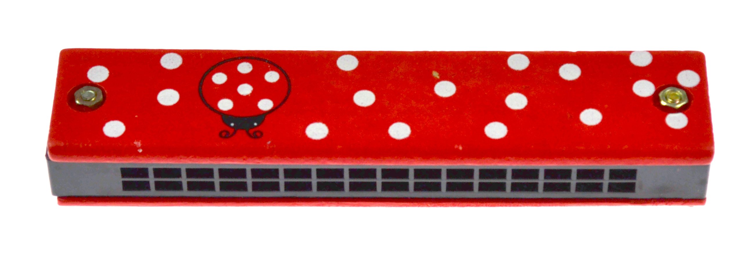 Obudowana drewnem harmonijka ustna ucieszy każdego małego muzyka.
