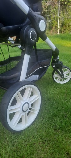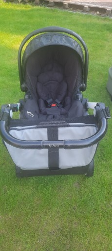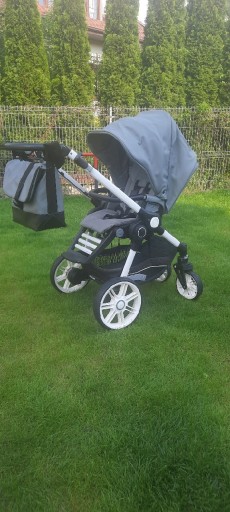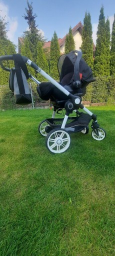 Комплект коляски преміум класу, нейтрального кольору, для хлопчика і дівчинки, в який входять: гондола, коляска і люлька від торгової марки Teutonia Be You 12. В комплект входить основа для автокрісла і дитячий база сумісна з рамою. Дощовик, москітна сітка та муфта для зимових прогулянок. Коляска має висувну ручку і можливість кріплення гондоли і коляски з варіантом перед-зад. Зручне ручне гальмо. Коляска використовується однією дитиною.