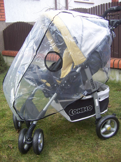 Folie przeciwdeszczowe do wózka głębokiego, z przekładaną rączką i spacerowego.