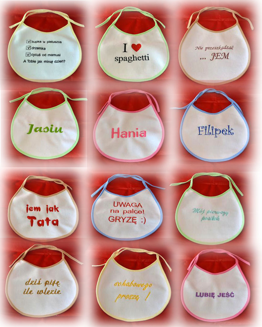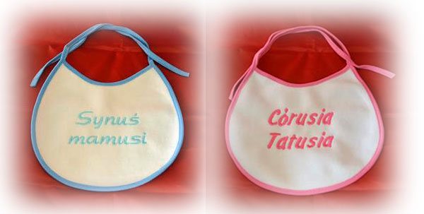 Na śliniaczku możemy wyhaftować dowolny napis - kilka słów, prostą grafikę..