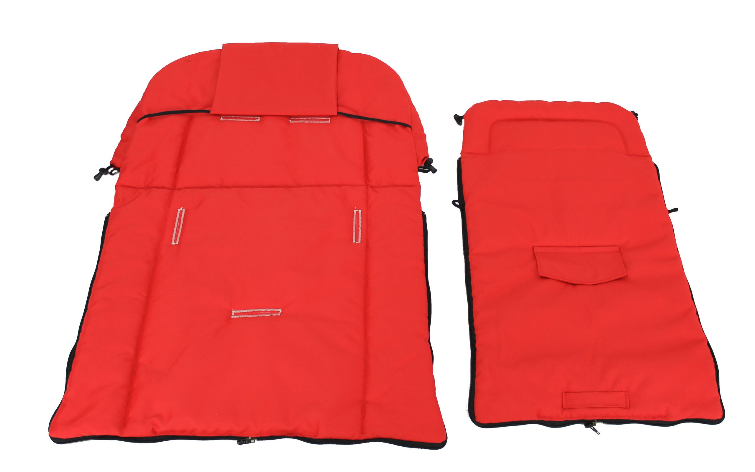 Znajdujące się w nim otwory umożliwiają przypięcie dziecka pasami wózka lub fotelika.Śpiwór zapinany jest na 2 zamki błyskawiczne co umożliwia całkowite odpięcie przykrycia
