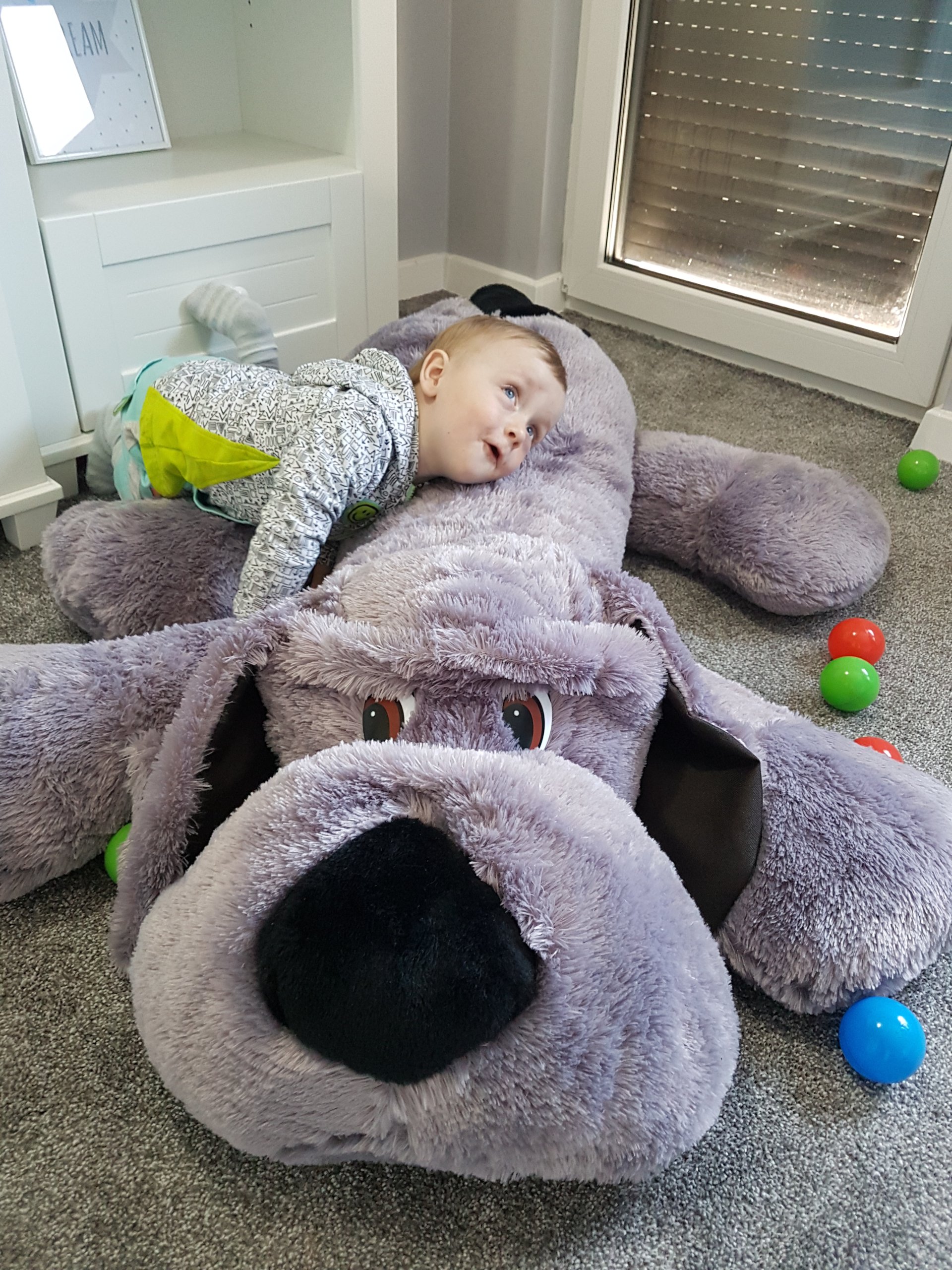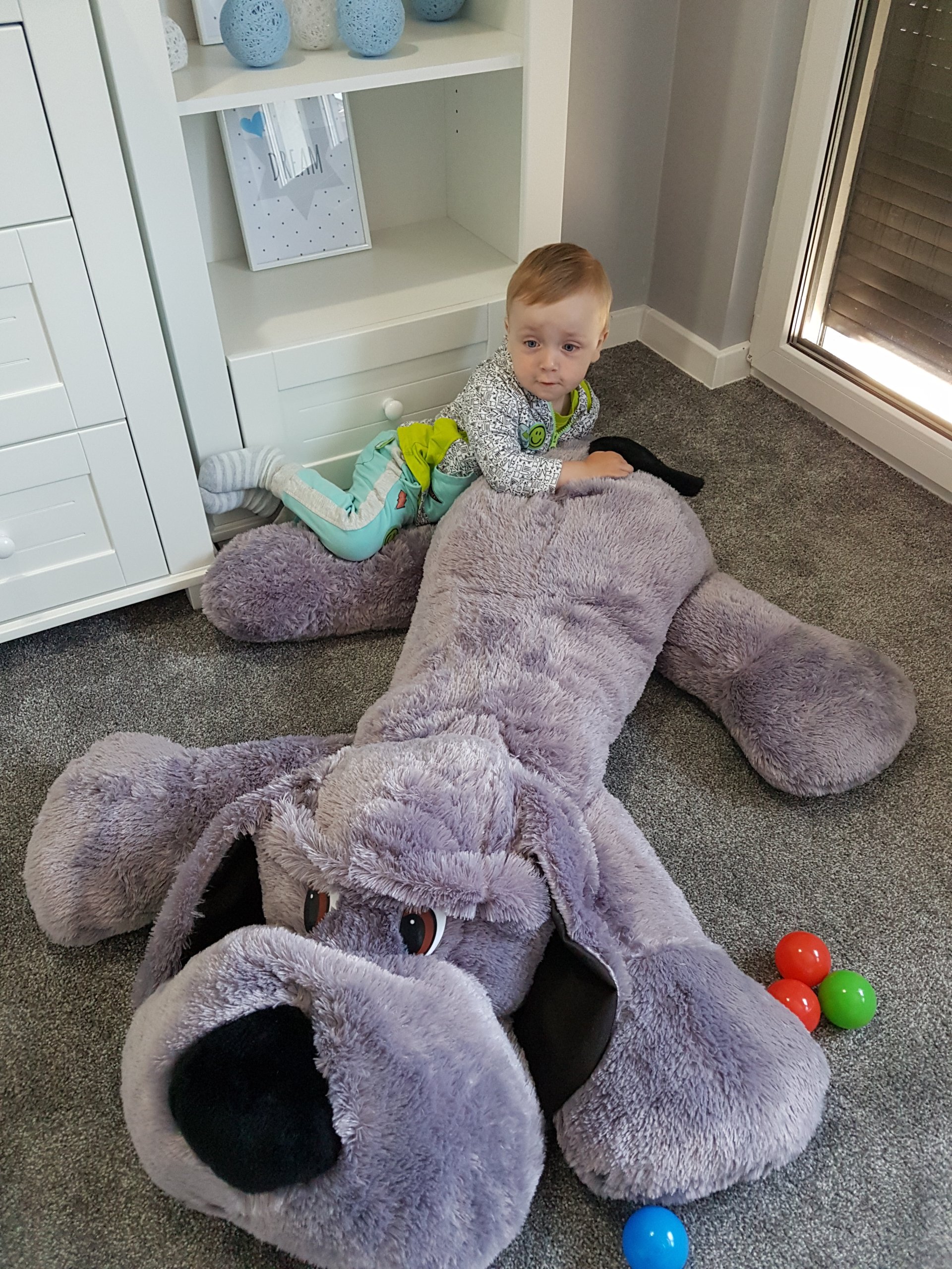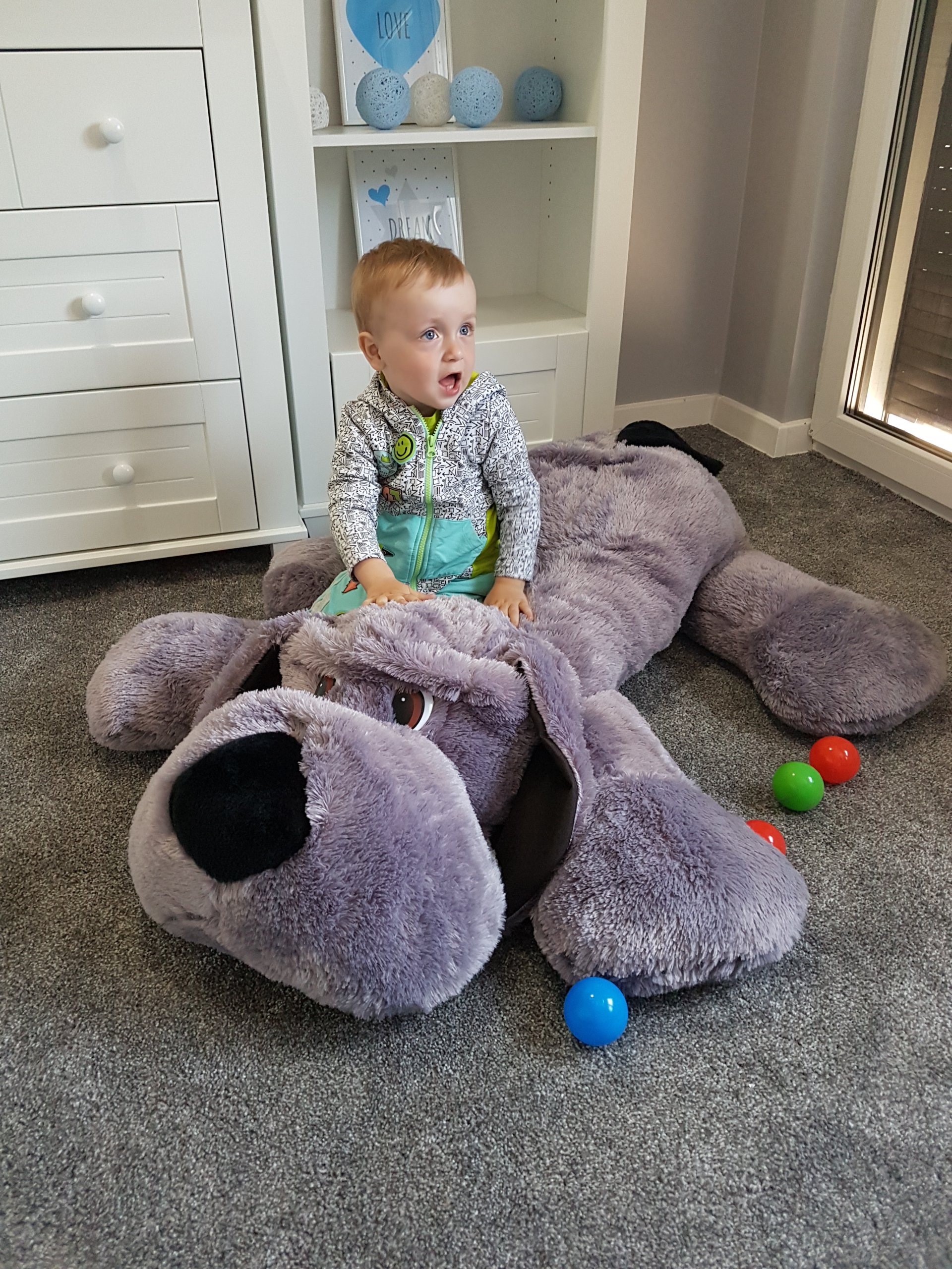 PIES JEST WYKONANY Z MIŁEGO ORAZ PRZYJEMNEGO W DOTYKU MATERIAŁU PLUSZOWEGO WYSOKIEJ JAKOŚCI.