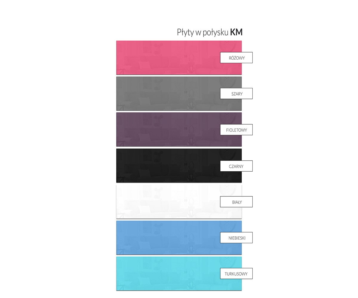 - fronty wykonane są z płyty MDF na wysoki połysk w następujących zestawieniach kolorystycznych: