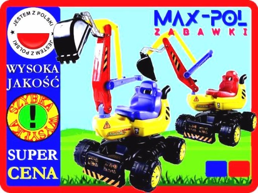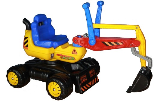 Управління здійснюється за допомогою двох важелів - один відповідає за роботу ковша, інший - за управління рукояткою. Додаткове обладнання включає фіксатор руки, який фіксує її в піднятому положенні. Зручне та велике сидіння забезпечує стабільне положення дитини. Ніжки підтримуються нековзкими підніжками. Крім того, дитина може рухати колеса ногами, змушуючи їх рухатися під час гри. В основі є практичний відсік для зберігання дрібниць. Велика основа і широко розташовані колеса іграшки забезпечують чудову стабільність під час гри. Ручка сидіння сприяє зручному перенесенню екскаватора. Завдяки роботі дитина розвиває ручні навички, покращує концентрацію та розвиває уяву та організованість. Іграшка ідеально підходить для домашнього використання - ви можете використовувати її, наприклад, щоб складати кубики, але справжня розвага починається в пісочниці, де ви можете сповна використовувати її можливості. Ідеальним доповненням до набору є самоскид.