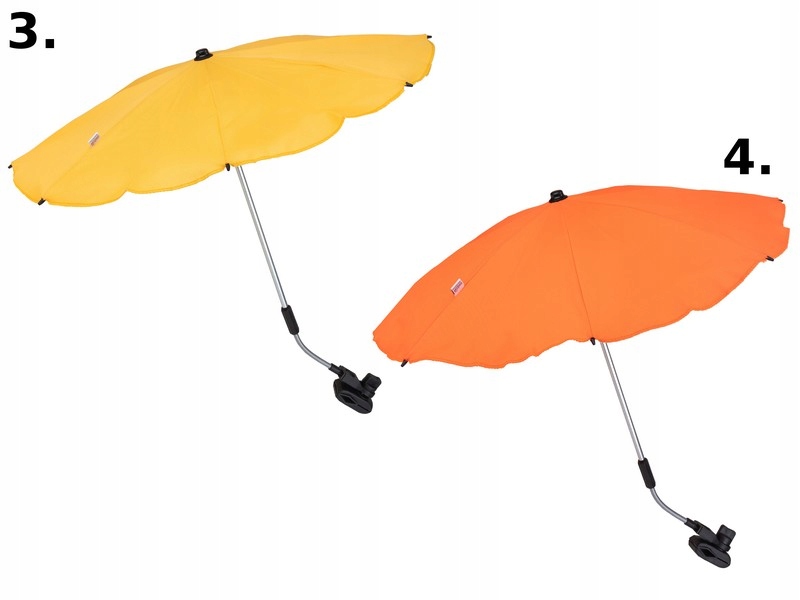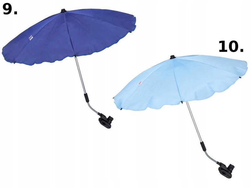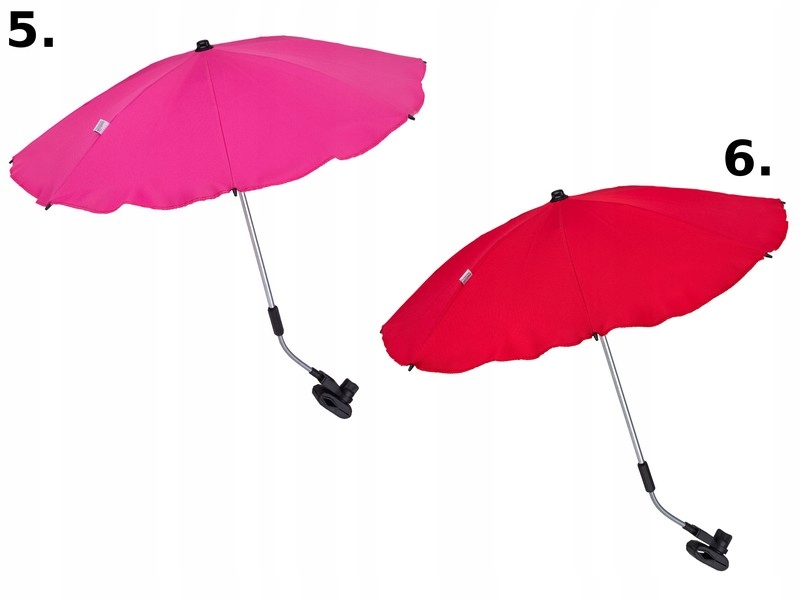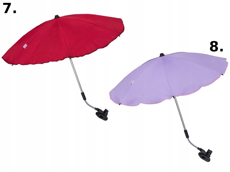 Parasolkę można wypiąć z wózka bez konieczności demontażu uchwytu. Dwa punkty regulacji pochylenia parasolki na stelażu ( sprężyny ) dają możliwość dowolnego nachylenia parasolki i ochrony dziecka przed promieniami słonecznymi, nawet gdy słońce jest bardzo nisko