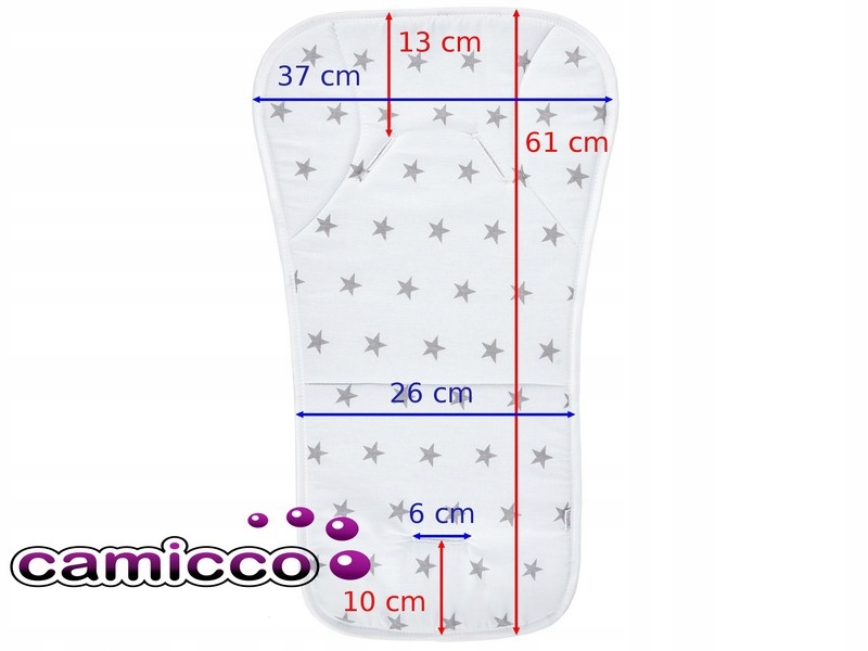 Wkładka wykonana jest z bawełny 100% pod nim wszyta jest mięciutka pianka, pasująca do większości fotelików samochodowych lub wózków dziecięcych