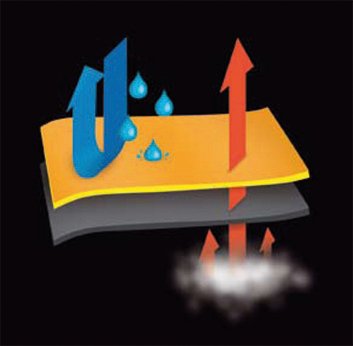 - 100% NIEPRZEMAKALNA , ODDYCHAJĄCA MEMBRANA REAKTYWNA UMOŻLIWIAJĄCA WEWNĘTRZNĄ WENTYLACJĘ