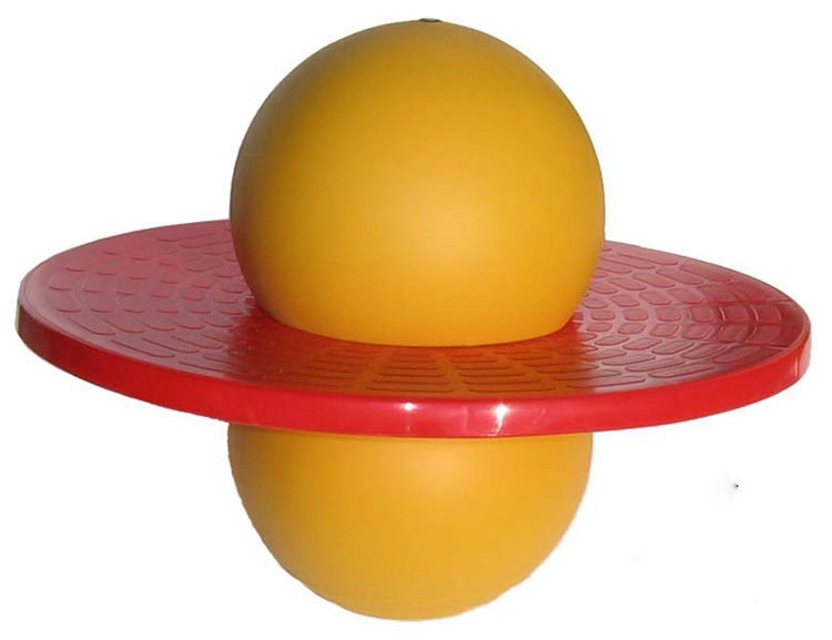 Stań obunóż na obręczy, ściśnij piłkę wewnętrznymi częściami stóp i skacz odbijając się do góry.Początki nie są łatwe, ale po opanowaniu nowej techniki skakania, gwarantowana świetna zabawa.