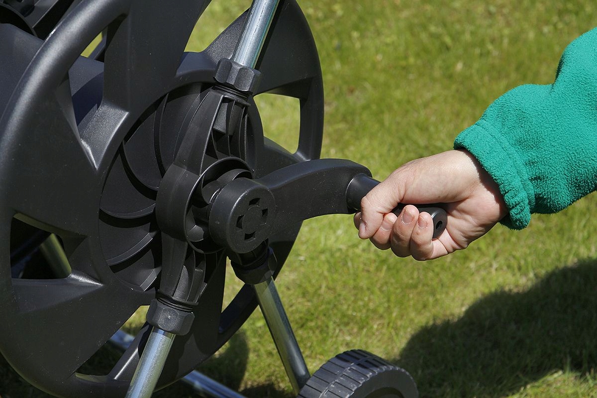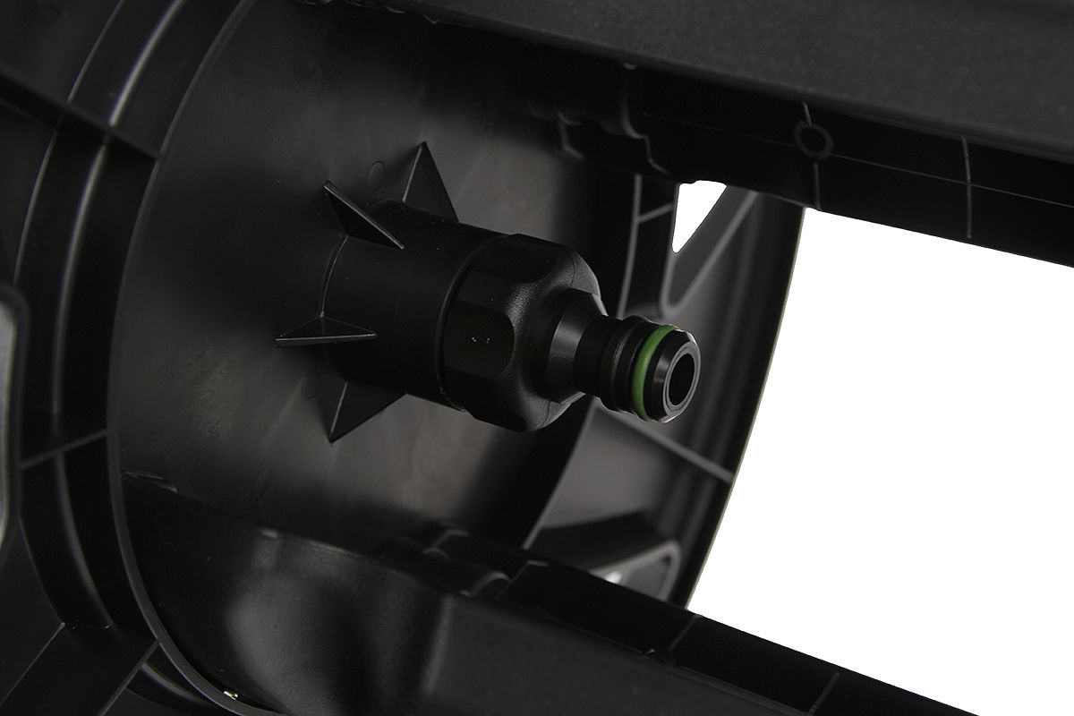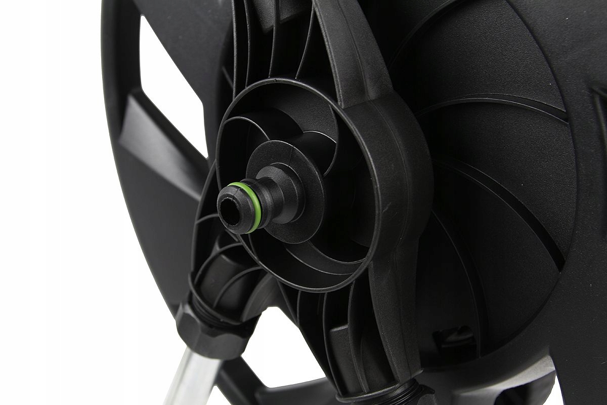 Zapewnia wygodne przewożenie i przechowywanie węża Nadaje się do wszystkich typów węży Produkt wykonany z wysokiej jakości tworzyw sztucznych, dzięki temu zapewni długotrwałe i niezawodne działanie Wewnętrzna ukośna szybkozłączka do węża zapobiega skręcaniu się go w momencie nawijania i rozwijania Zapobiega plątaniu się węża i przez to zwiększa jego żywotność Korba do zwijania węża na bęben