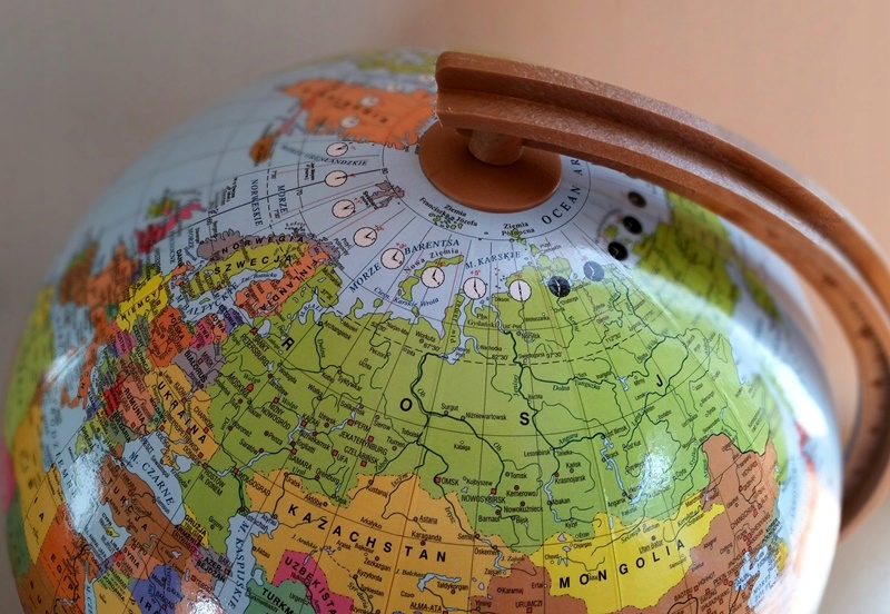 Duży dekoracyjny globus o średnicy kuli 32cm z drewnianą podstawą.