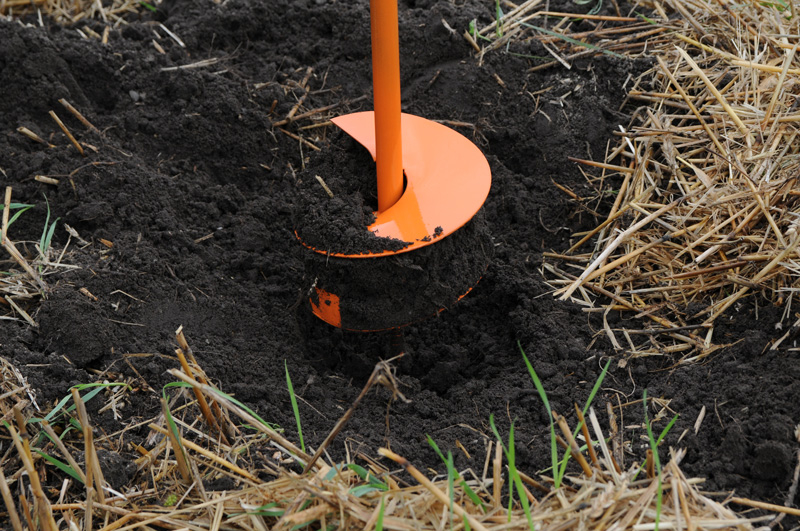 Świder ręczny do gleby. Posiada metalowy trzonek i wiertło spiralne o średnicy 25 cm. Wygodne uchwyty z tworzywa zapewniają komfortową pracę.