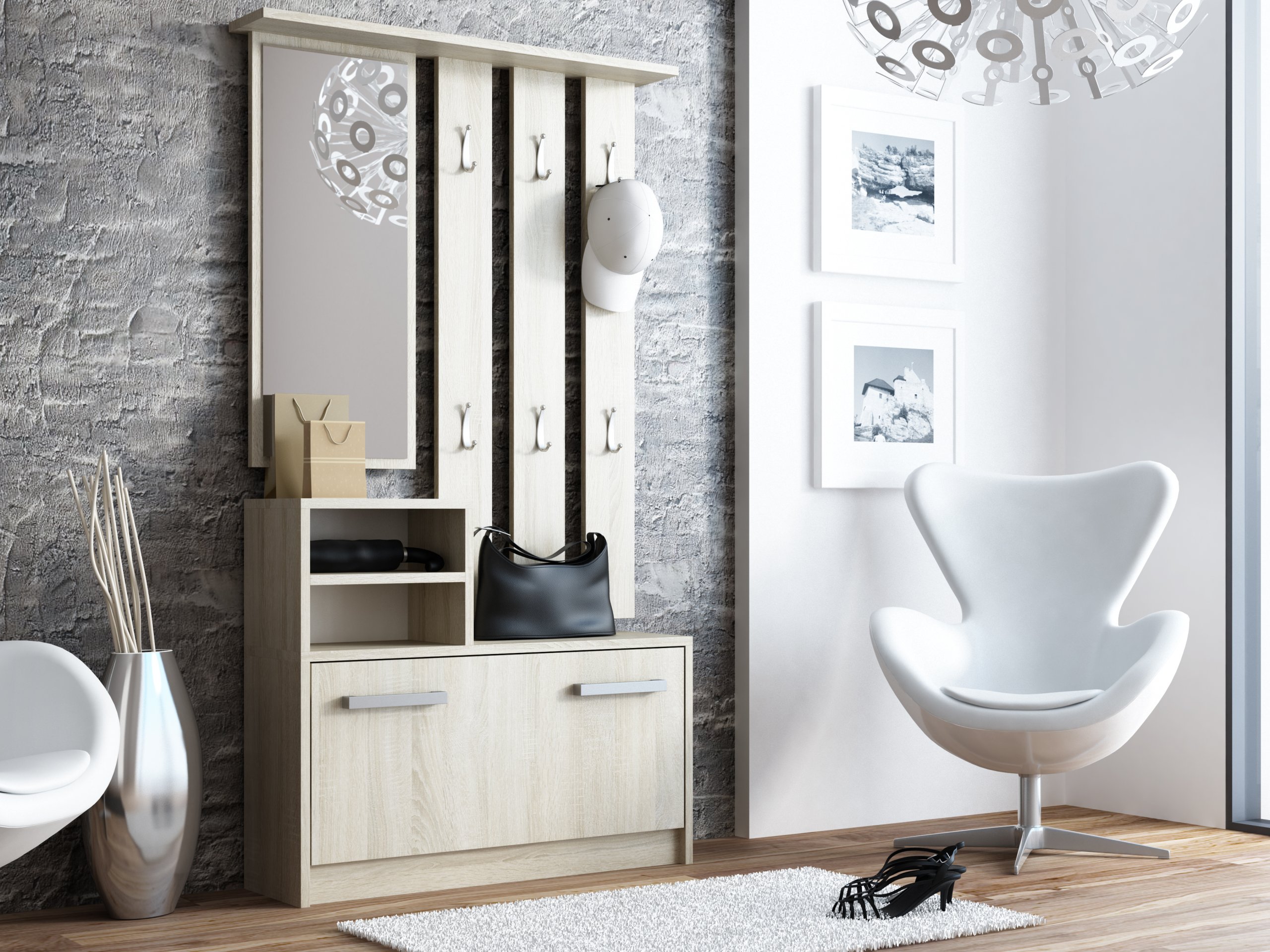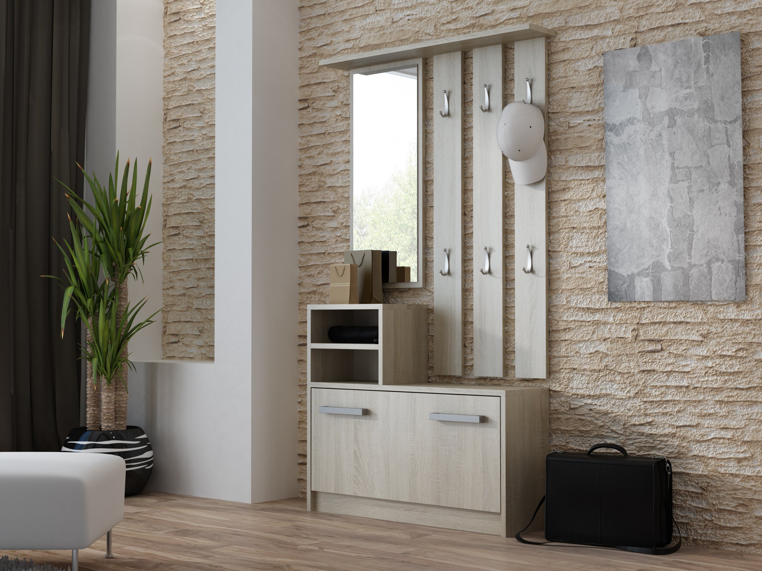 ГАРДЕРОБНАЯ ВЕШАЛКА ЗЕРКАЛО ТУМБА ДЛЯ ОБУВИ ДУБ СОНОМА