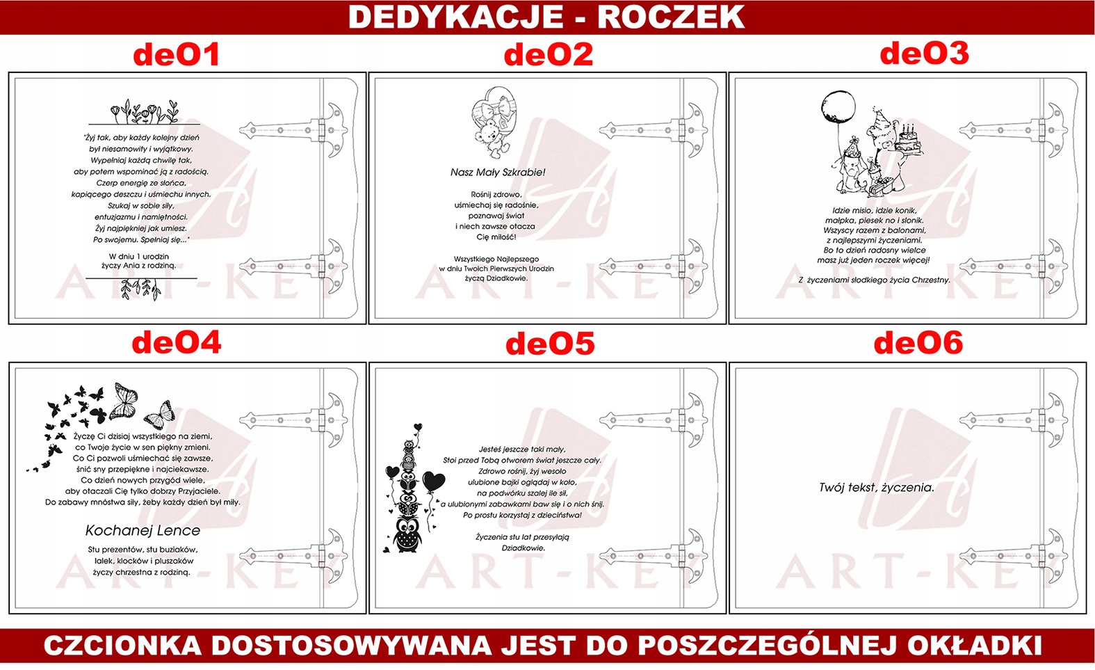 Po złożeniu zamówienia podaj symbol np. RO1, imię dziecka datę uroczystości,