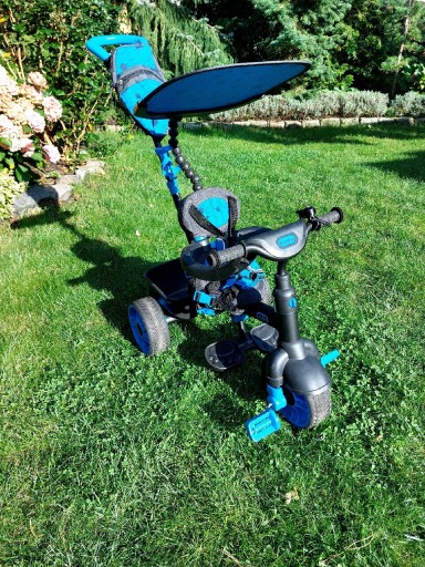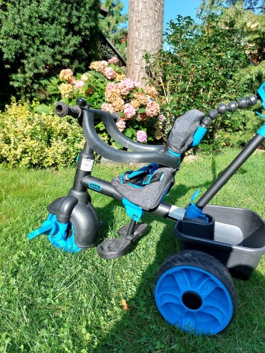 Як новий синьо-чорний дитячий велосипед. Ідеальний стан, користувався двічі. Зручний, міцно виготовлений. Виготовлений з якісних матеріалів. Завдяки особливій конструкції він підходить не тільки для прогулянок з малюком, а й дозволяє більш великим дітям вчитися і кататися самостійно. Міцний і міцний. Разом з 3-ступінчастим регулюванням м'якого сидіння і численними регульованими знімними елементами вони забезпечують максимальний комфорт і безпеку використання велосипеда.