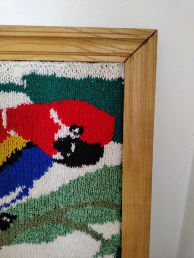 Папуга - барвиста картина ручного в'язання.