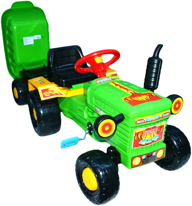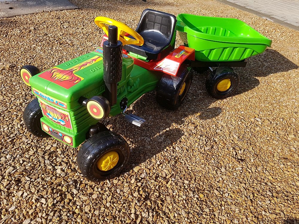 - Posiada tylni napęd łańcuchowy – jest napędzany siłą mięśni malucha, posiada ruchomy układ kierowniczy